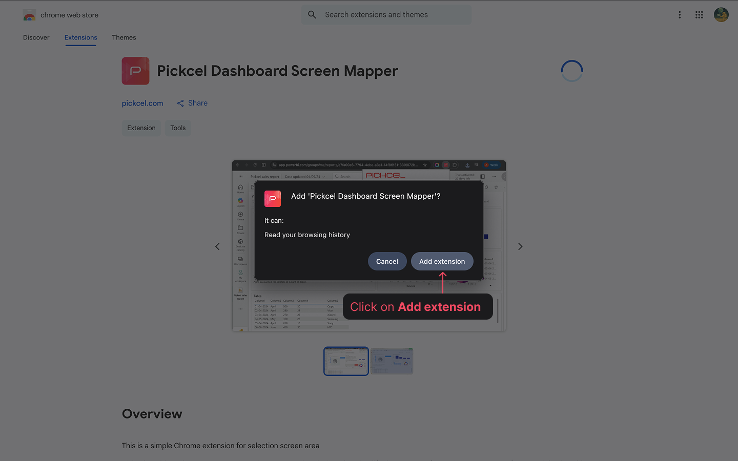 Click here to install the Pickcel Dashboard Screen Mapper extension