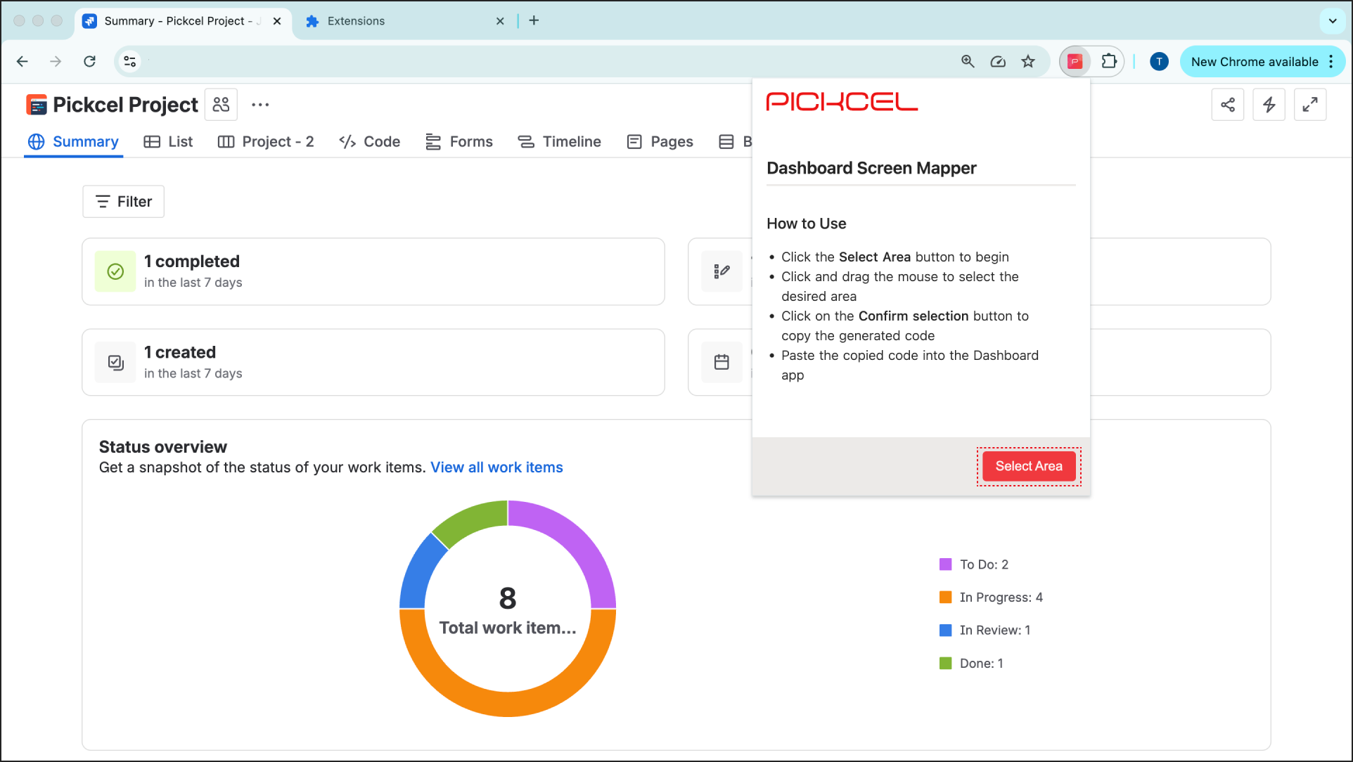 Click on the Screen Mapper extension icon from your Chrome toolbar. Click the Select Area button.