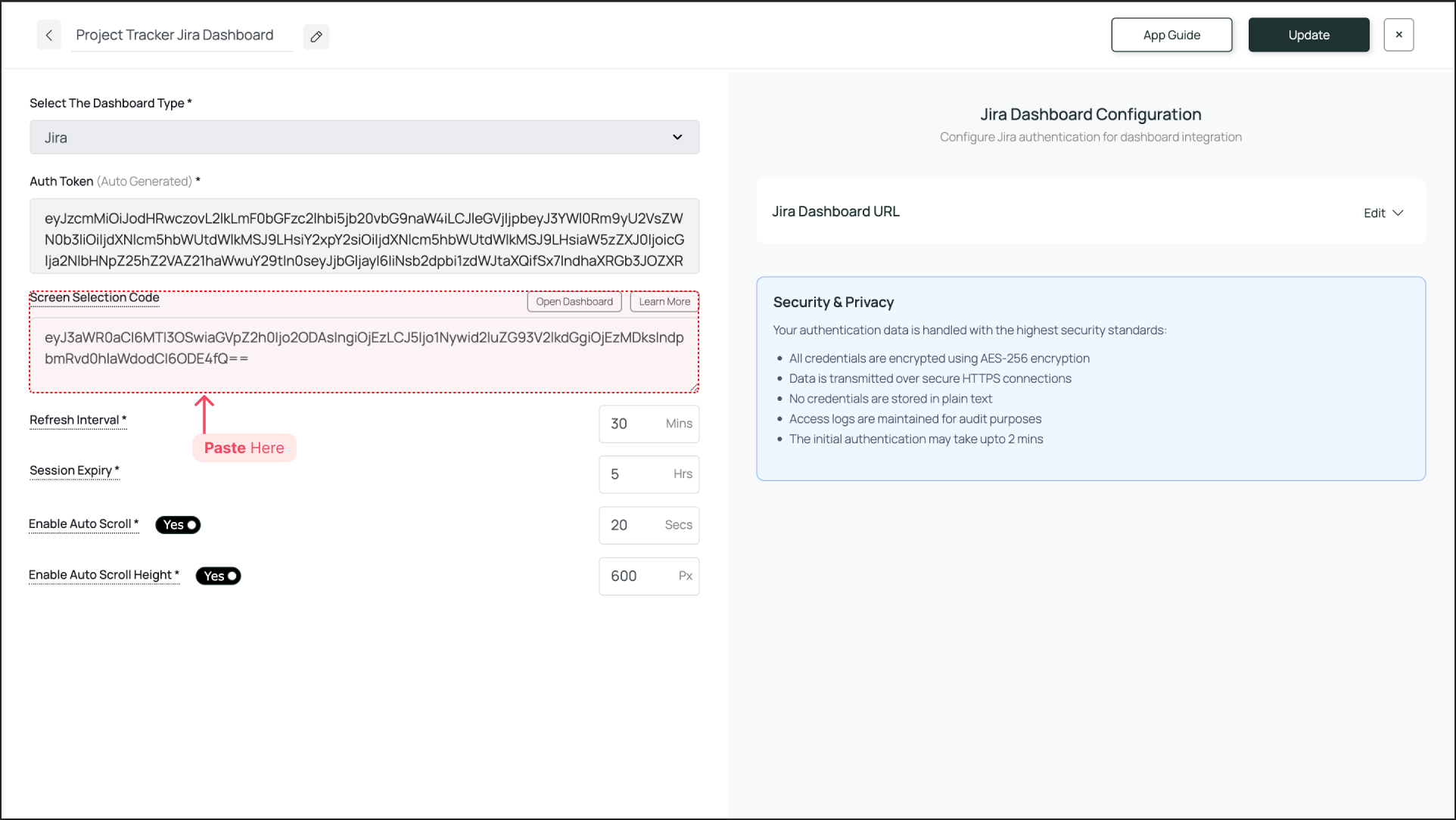Go back to your Dashboard App configuration in Pickcel Console and paste this code into the Screen Selection Code field.