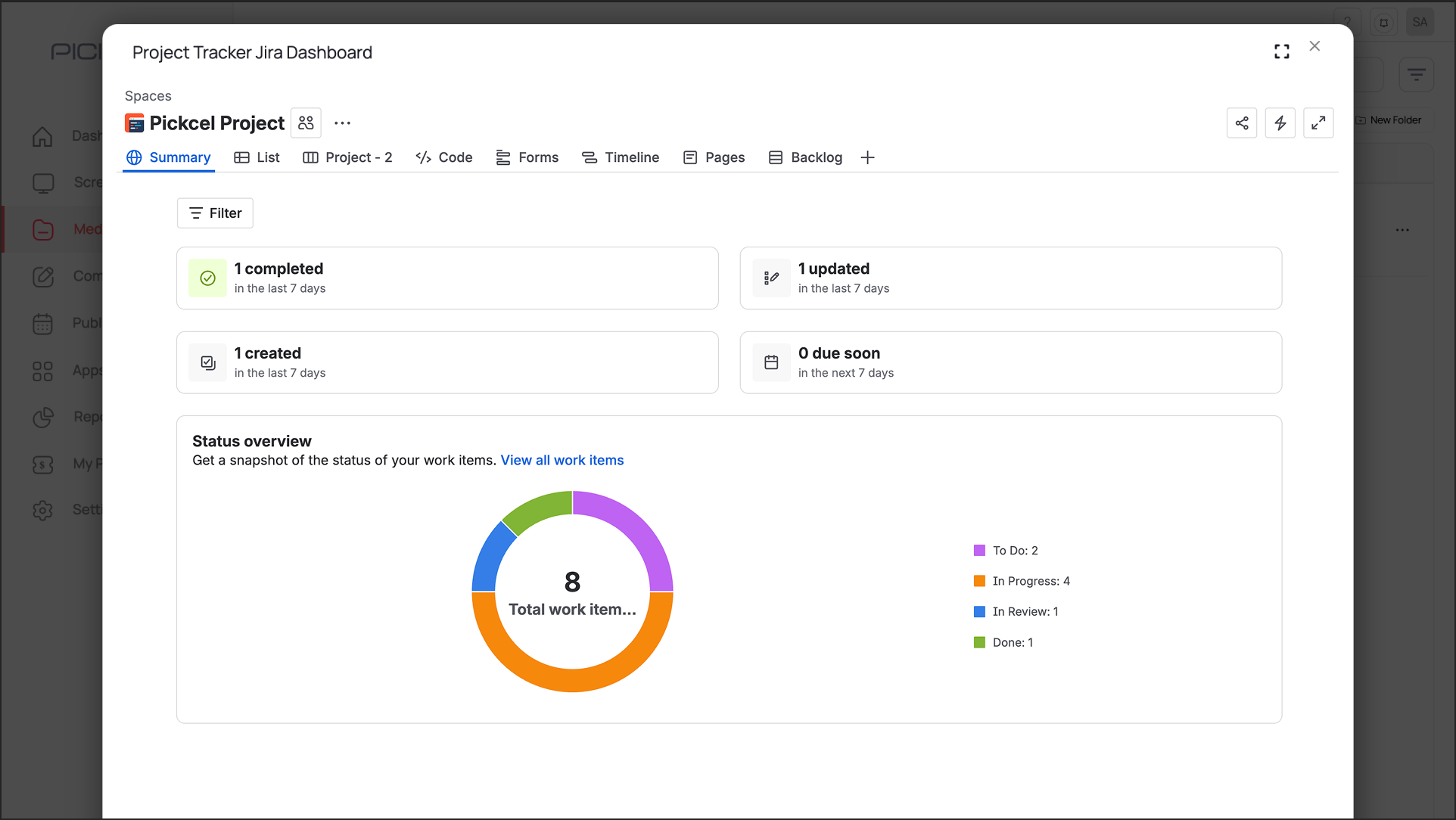 Open the dashboard page (e.g., in Jira, Power BI, etc.) you want to display.